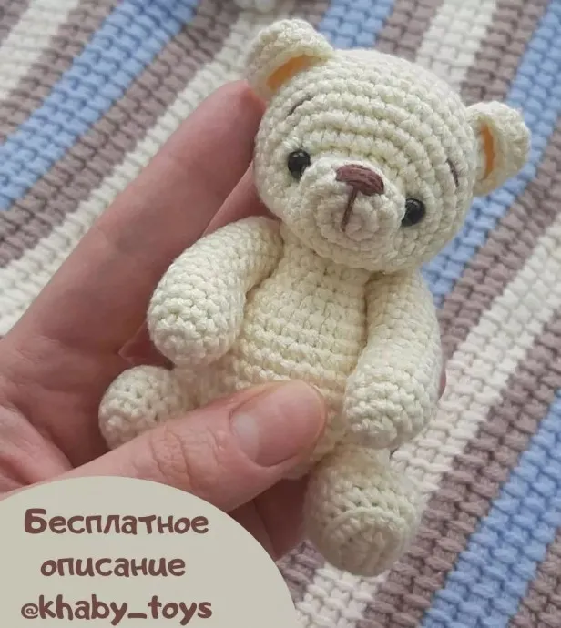 Готовый мишка получается около 10 см, если его поставить, и примерно 8 см, когда он сидит. Такой маленький, что его так и хочется обнять!