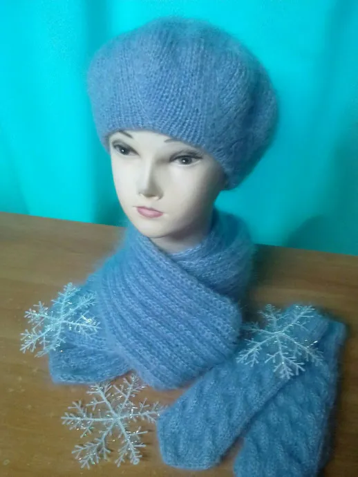 Берет вяжется по кругу,набираем 16 петель, замыкаем в круг ,первый ряд лицевые .2-р. начинаем прибавления ,формируем восемь клиньев ,две лицевые накид,и т.д. до конца ряда.3-р.все лицевые,4-р.три лицевых накид,и т.д.