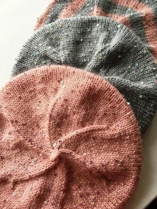Стягиваем петли, прячем концы. Наш берет готов.