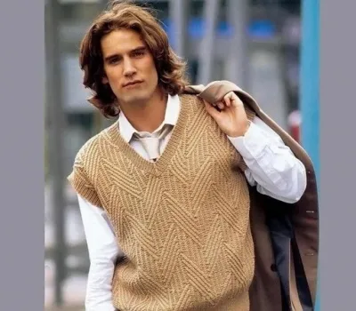Вам потребуется: пряжа (100% шерсть мериноса; 120 м/50 г) - 500 (550) г цвета верблюжьей шерсти; спицы №4.