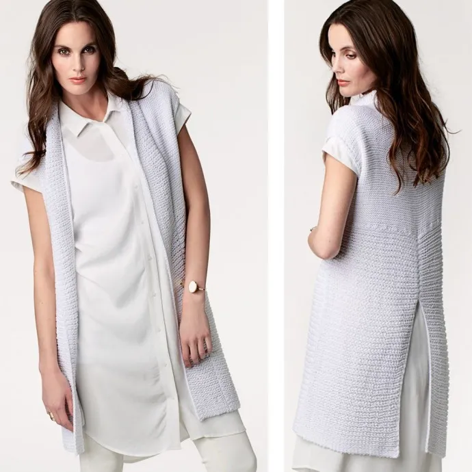 Вяжем удлиненный жилет с разрезом на спинке в смешанной технике