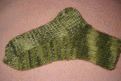 Равномерно убавить 4 петли (чтобы носок не был широким, т.к. добавили дополнительную нить).