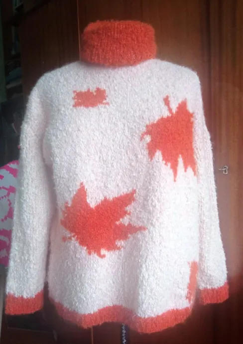 Далее фото самого свитера. На мне не получилось, муж никак не научится фотографировать, непроизвольно у него вместе со спуском дергается рука и все размазывается.