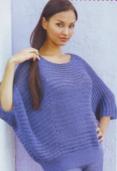 Свободный пуловер женский – Вам потребуется: пряжа Novita Luxus Cotton (100 % хлопок, 106 м на 50 г) – 400 (450) 500 (550) 600 г цвета джинс, спицы № 4 и 4,5.