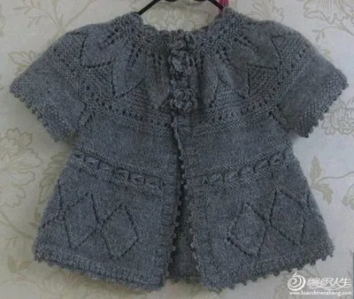 Ну а дальше элементарно, рукава я не довязывала, просто обвязала крючком и все, спинку и полочки вязала вместе, узор соображала так: 5 лиц. пет., накид, две петли вместе и т. д... изн. р. изнаночными, след. ряд подгоняла чтобы дырочки смотрелись в шахматном порядке, потом все обвязала столбиками б/н в 3 ряда и возд. петлями... ну как то так...
