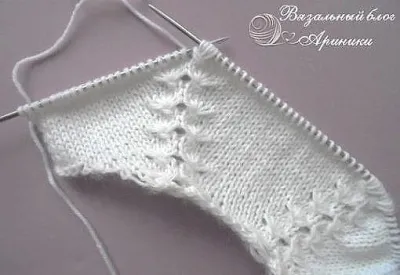 ряда провязать скрещённой лицевой петлёй, далее все петли лицевые. В