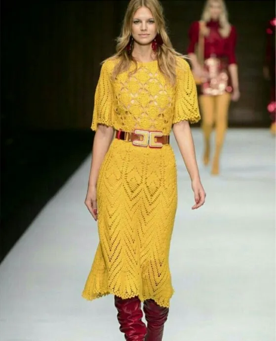 Вот тот случай, когда вязаные работы становятся украшением не просто для повседневной жизни, а даже модных показов!
