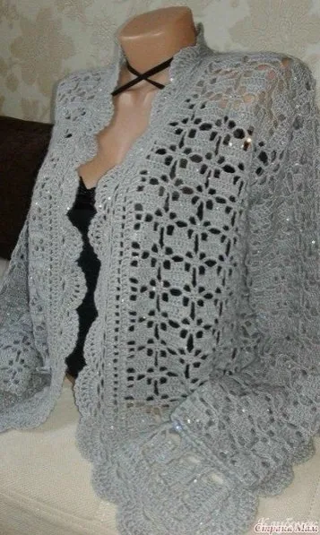 Женский серый жакет, связанный крючком: элегантная база для любого гардероба