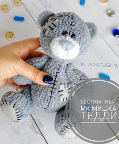 Плюшевый Мишка Тедди крючком: серо-голубое облачко нежности