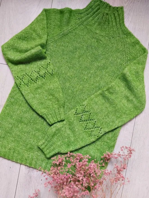 Женский зелёный свитер «Лайм», связанный спицами: яркий акцент в холодный сезон