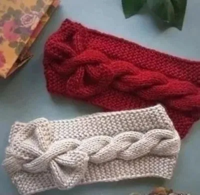 Вяжем повязку, пока у нас не получится 12 перехлёстов косы. После 12 перехлёстов вяжем ещё 6 рядов по прямой.