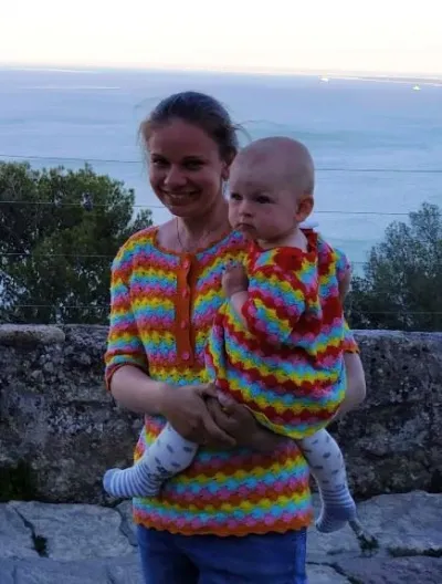 Мамина кофточка. Пуговки сделаны по просьбе дочки, чтобы можно было кормить малышку, путешествуя по Европе