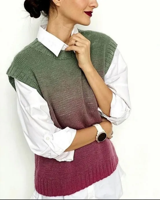 Совет. И перед и спинку вяжем из разных клубков, чтобы градиент получился симметричным!