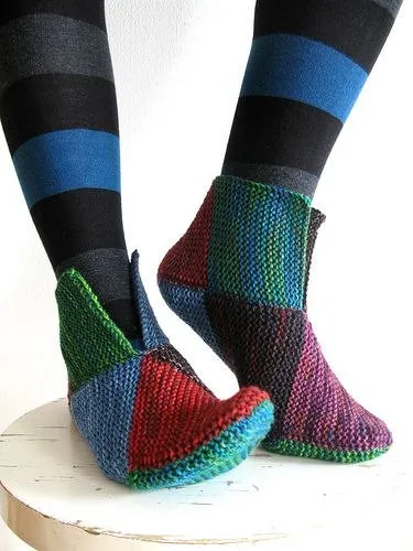 Веселенькие тапочки-носочки из квадратов спицами