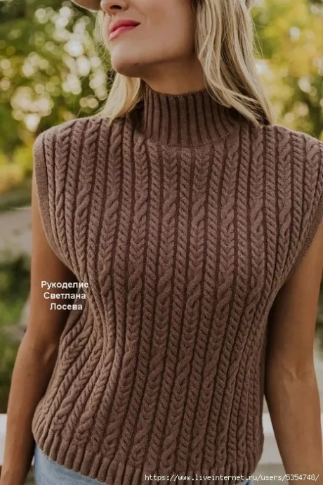 Вязать можно из любой пряжи (летней с хлопком или зимней с шерстью), отдельными деталями или целым полотном на круговых спицах. В любом варианте будет хорошо.
