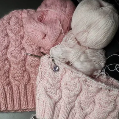 Резинка выполняется в 4 нити пряжи Норка с добавлением эластичной нити в цвет пряжи (обычно продается в комплекте с пряжей). Возможно выполнение резинки без эластичной нити, в этом случае вязать нужно плотнее, чем обычно, либо взять спицы №3,75.