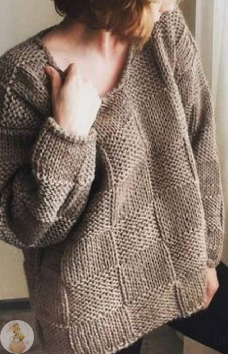 Пуловер оверсайз узором "шахматка". вяжем спицами
