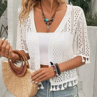 Ажурная кофточка с бахромой