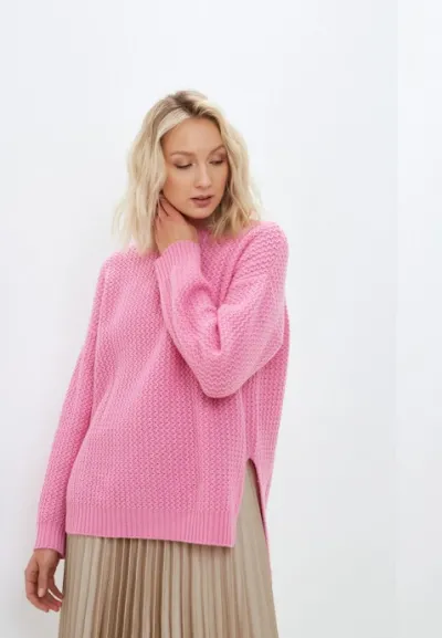 1.Покрой у джемпера очень простой: круглый ворот, спущенное плечо, разрезы по бокам.