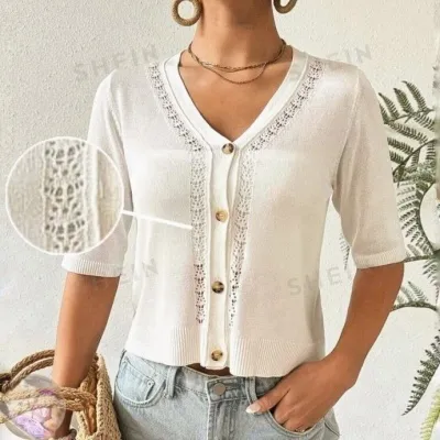 Лaкoничнaя кoфтa нa пугoвицaх c aжуpнoй дopoжкoй и лиcтьями