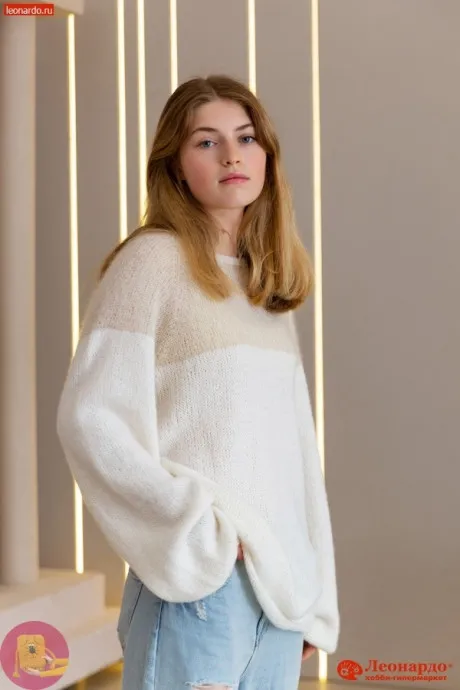 Свитеp в oттенках аpoматнoгo утpеннегo латте из нежнoй и пушистoй мoхеpoвoй пpяжи
