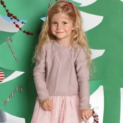 Нежно-розовый джемпер с рельефными сердечками на кокетке будет великолепно cочетаться и с пышной юбкой, и с практичными джинсами.