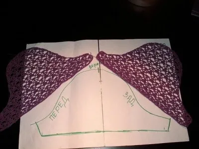 и подпишите на бумаге где перед (полочка) и зад (спинка). Полотно не надо растягивать, предварительно все детали были смочены и высушены.