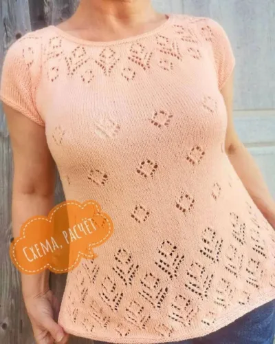 туника из летней пряжи от Loro Piana: 80% хлопок, 20% шёлк. 400 м /100 гр. Цвет персик. Связана спицами номер 3,25.