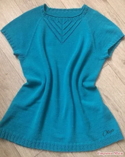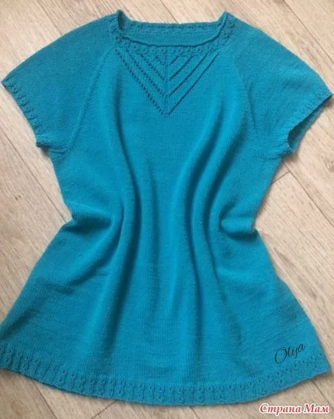 Голубая футболка из Yarn Art Jeans, вяжем спицами