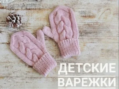 Детские варежки с косами спицами!