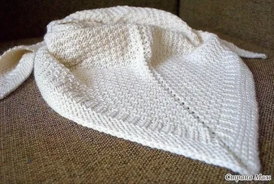 Этот узор имеет свойство стягивать полотно, поэтому со спиц шаль будет больше напоминать корявенький ромб, шаль необходимо хорошенько увлажнить и растянуть.
