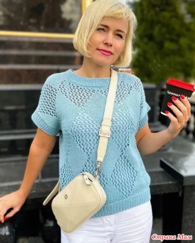 Голубая футболка спицами