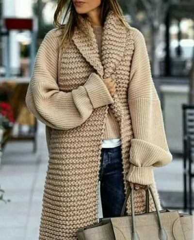 Я так понимаю, это свитер и шарф крупной вязки. А выглядит как пальто или я ошибаюсь??