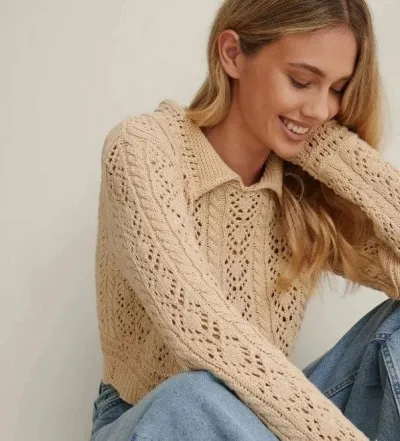 Ажурная кофта с отложным воротником