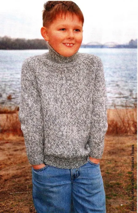 Рукава: на спицы № 4 набрать 38 петель и вязать резинкой 2х2 5 см. Продолжить вязание спицами №5,5 лицевой гладью. Для формирования скосов рукавов прибавлять с обеих сторон по 1 петле в каждом 4-м ряду. На высоте 30 см от наборного края выполнять убавки реглана таким же образом, как на спинке и переде. Выполнив 19 убавок, на высоте 52 см от наборного края, закрыть оставшиеся петли рукава.