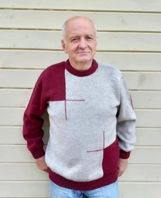 Мужской джемпер спицами в технике интарсии — это отличный пример того, как вязание может быть современным, графичным и универсальным. Серо-бордовая гамма делает модель актуальной вне сезонов, а техника добавляет изделию индивидуальность и глубину.