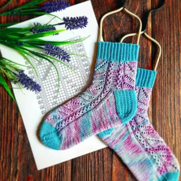 После вывязывания резинки приступай к вязанию паголенка. Вяжи по схеме, повторяя раппорт с 1 по 27 петлю 2 раза. В высоту связать 1 полный раппорт с 1 по 25 ряд.