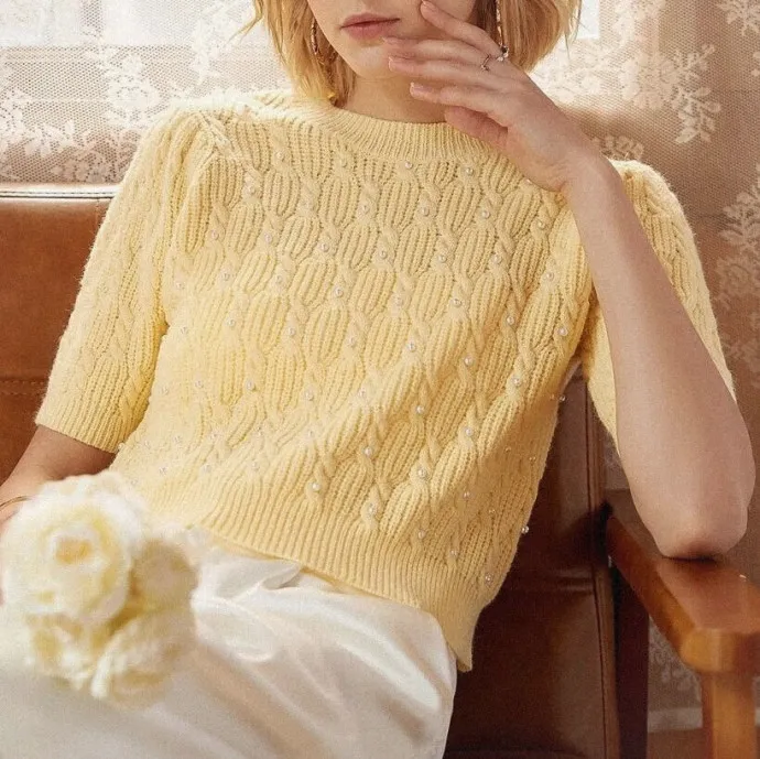Укороченный джемпер с бусинами