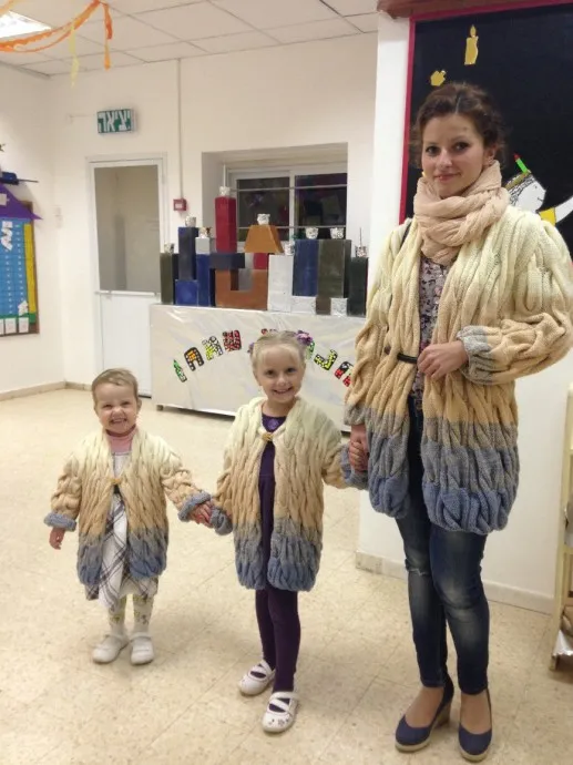 Детские кардиганчики, еще вязались шапочки в комплект. На все кардиганы ушло примерно 1450г пряжи( взрослый-850г, детские- 350г и 250г)