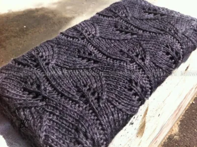 Набрать 100 п. и вязать 4 ряда жемчужным узором, далее вязать основным узором "листья", при этом первые и последние 4 п. продолжать вязать жемчужным узором. Вязать на необходимую высоту и далее провязать еще 4 ряда жемчужным узором. Закрыть все петли.