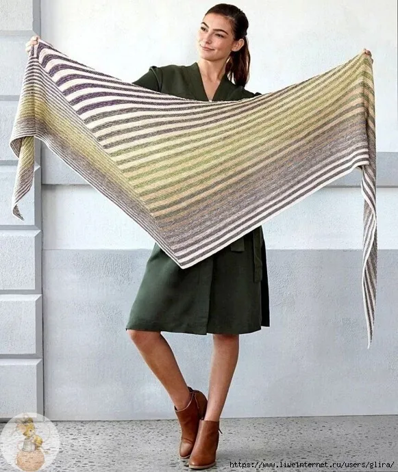 Шаль "Подвижные полосы" вяжем спицами