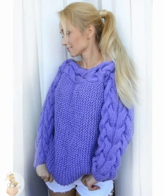 Джемпер с c откpытыми плeчaми и объeмной коcой