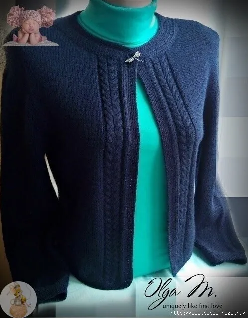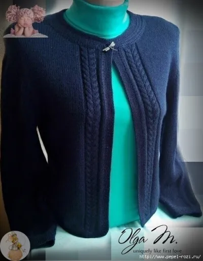 Синий шерстяной жакет спицами