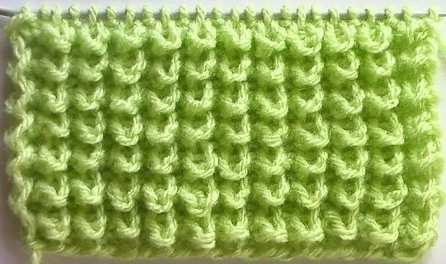 Набираем четное количество петель. Раппорт узора 4 петли и 4 ряда вверх.