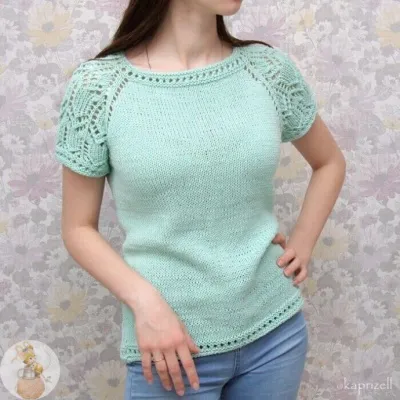 Рукава с ажурным узором становятся главным акцентом, делая образ воздушным и изящным, а аккуратное полотно тела создаёт гармоничный баланс. Такая кофточка подходит как для прохладного летнего вечера, так и для весны или ранней осени, когда хочется лёгкой многослойности.