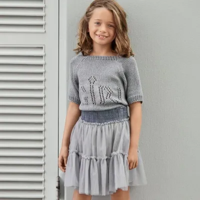 Сетчатый узор на передней части этого джемпера для девочки образует слово «Girl».