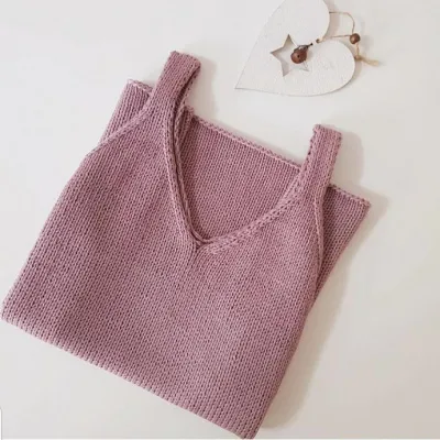 • Вяжем перед ,все тоже самое ,только вырез начать в 10 ряду .Убавляем пока на лямках не будет по 11 петель.(видео)