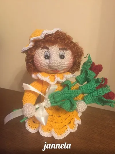 Моя новая вязанная куколка.Она солнечная и с цветами.