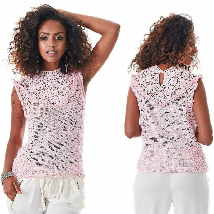 Ажурный светло-розовый топ крючком