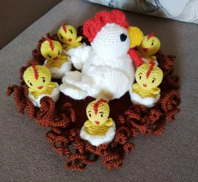 Вязаная курочка с цыплятами